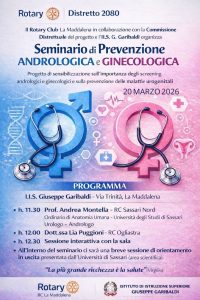 Il 20 marzo 2026, l’I.I.S. Giuseppe Garibaldi ospiterà un importante Seminario di Prevenzione Andrologica e Ginecologica. L’iniziativa, organizzata dal Rotary Club La Maddalena in collaborazione con la Commissione Distrettuale e l’Istituto, mira a sensibilizzare gli studenti sull’importanza degli screening e della prevenzione delle malattie urogenitali.